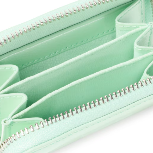 Новый кошелек для мелочи Dorp из мятно-зеленой синтетической кожи. Внутри три открытых отделения для монет и два слота для карт. Застегивается на молнию. Размеры (высота x ширина x глубина): 11 x 12 x 3,50 см.