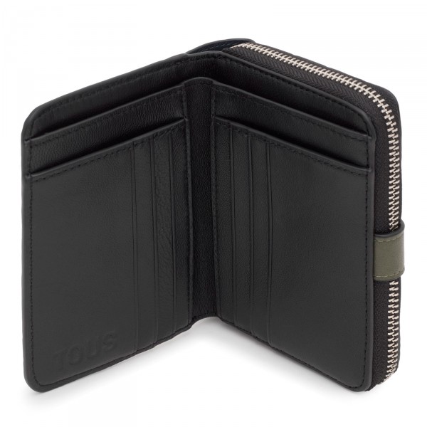Urbana Logo Новый кошелек из темно-синей кожи с сертификацией LWG. Имеет два отделения. Одно с застежкой на кнопку, восемью прорезями для карт и тремя открытыми отделениями для купюр. Другое, с застежкой-молнией, имеет три открытых отделения для монет. Размеры (высота x ширина x глубина): 9,5 x 14 x 5 см.