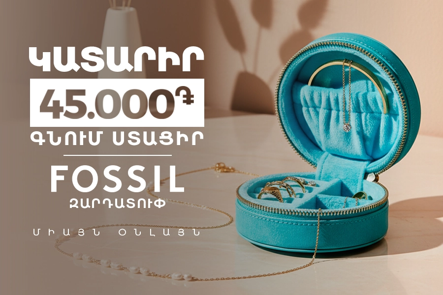 Կատարի՛ր 45,000 դրամ և ավելի գնում օնլայն time.am կայքից՝ ստացի՛ր Fossil ապրանքանիշի զարդատուփ