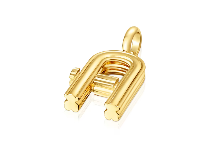 TOUS Alphabet միջին կախազարդ արծաթից՝ 18 կարատ ոսկեպատմամբ, տառ A։ Մոտիվի չափսը՝ 14.75 մմ։ (Այս ապրանքը չի ներառում շղթան)։ Պատրաստված է արծաթից՝ 18-ից 23 կարատ ոսկեպատմամբ (3 միկրոն հաստությամբ), ինչը երաշխավորում է զարդի ավելի մեծ դիմացկունությունը։