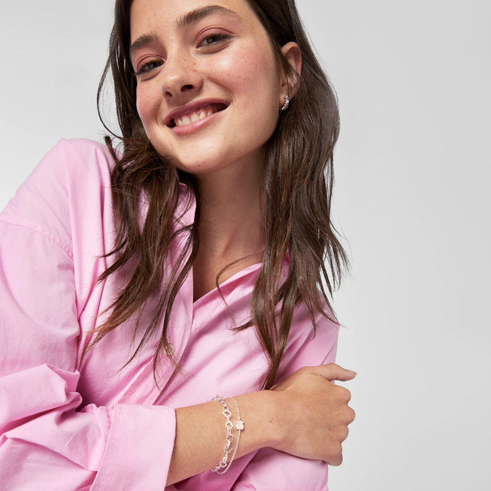 Արծաթյա TOUS գունավոր ապարանջան վարդագույն քվարցով։ Մոտիվը՝ 9 մմ։ Երկարությունը՝ 17,50 սմ։