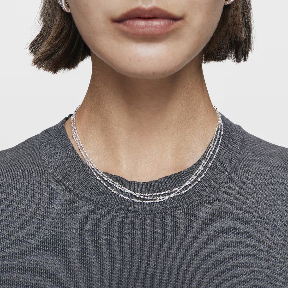 TOUS Basics կարճ եռաշղթա վզնոց արծաթից՝ ընդմիջվող գնդիկավոր մոտիվներով։ Վզնոցի երկարությունը՝ 45 սմ։ Կարաբին փական։