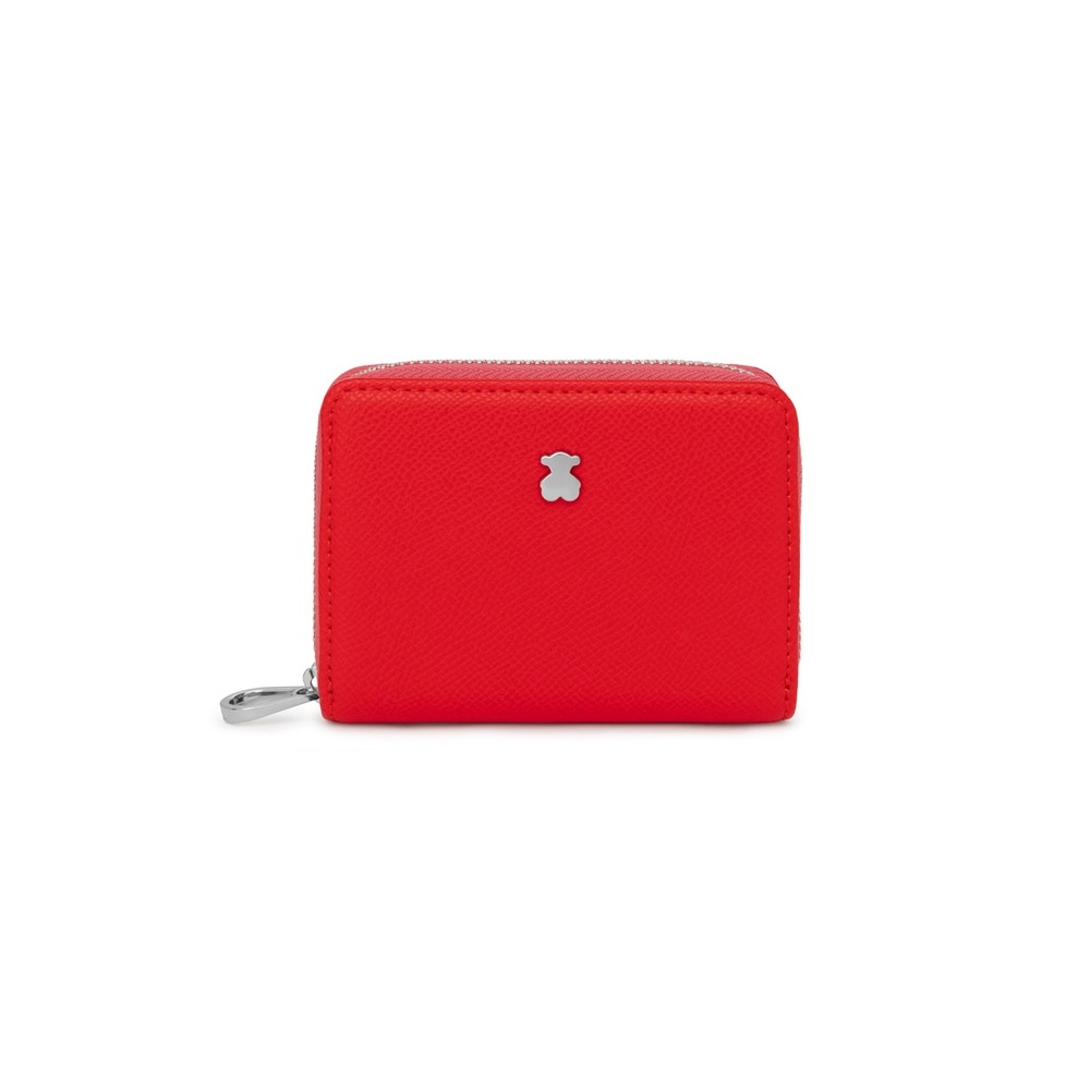 An essential classic. This medium change purse in red, pink and light pink synthetic leather belongs the New Dubai Saffiano collection. The simple yet elegant must-have. Medium TOUS change purse from the New Dubai Saffiano collection in synthetic Saffiano leather in red, pink and pale pink. It fastens with a zipper. The interior has 2 compartments for coins and 2 card slots. Measurements (height x width x depth): 8 x 11 x 3 cm.