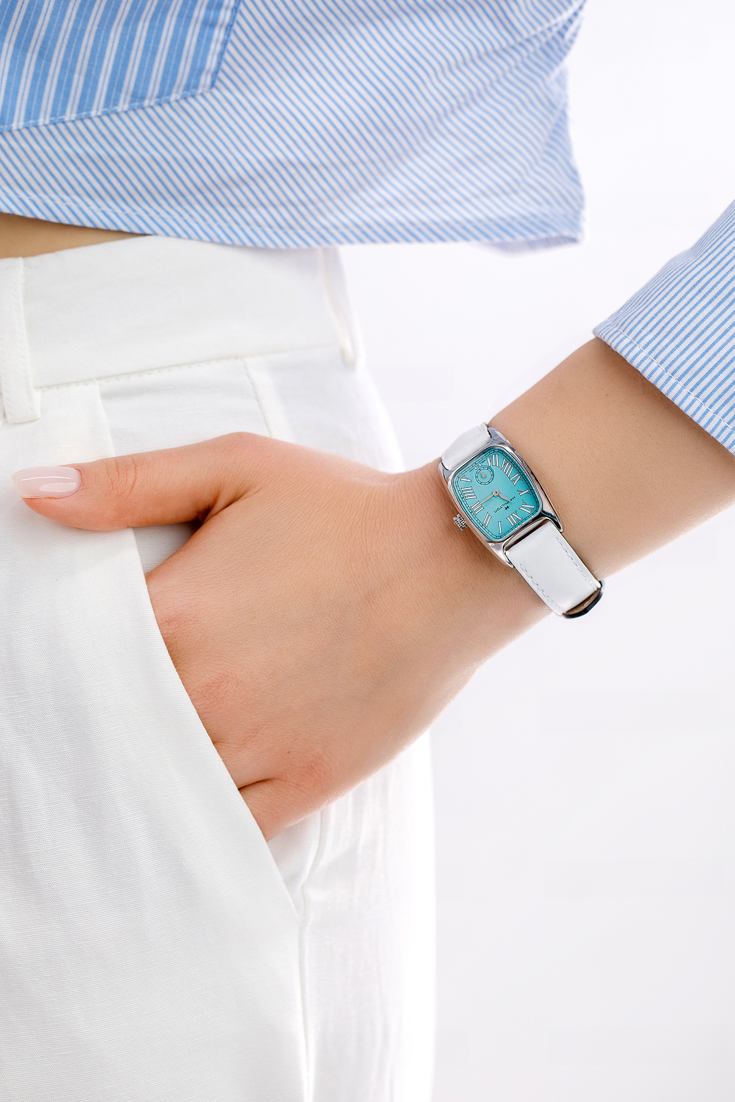 Hamilton brand provides 2 year warranty on watch mechanisms and 3 months warranty for battery. Warranty does not work in case of external damages.